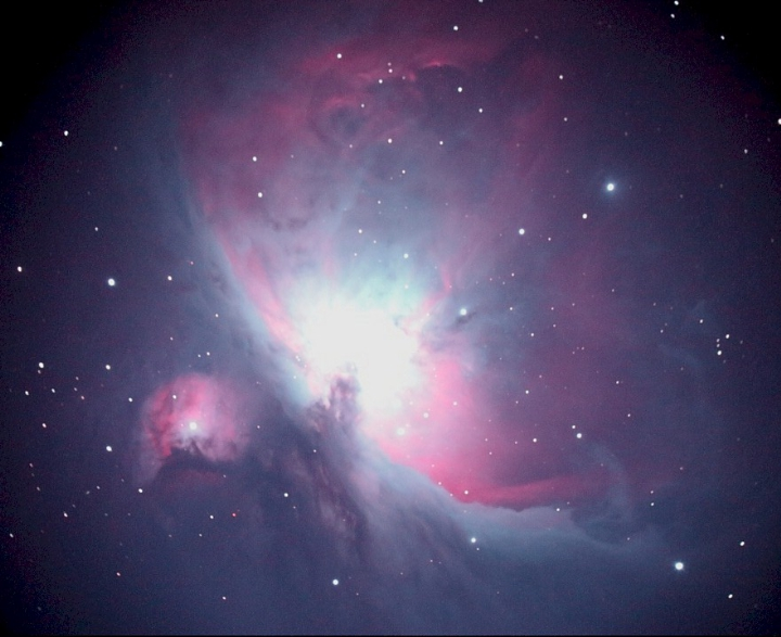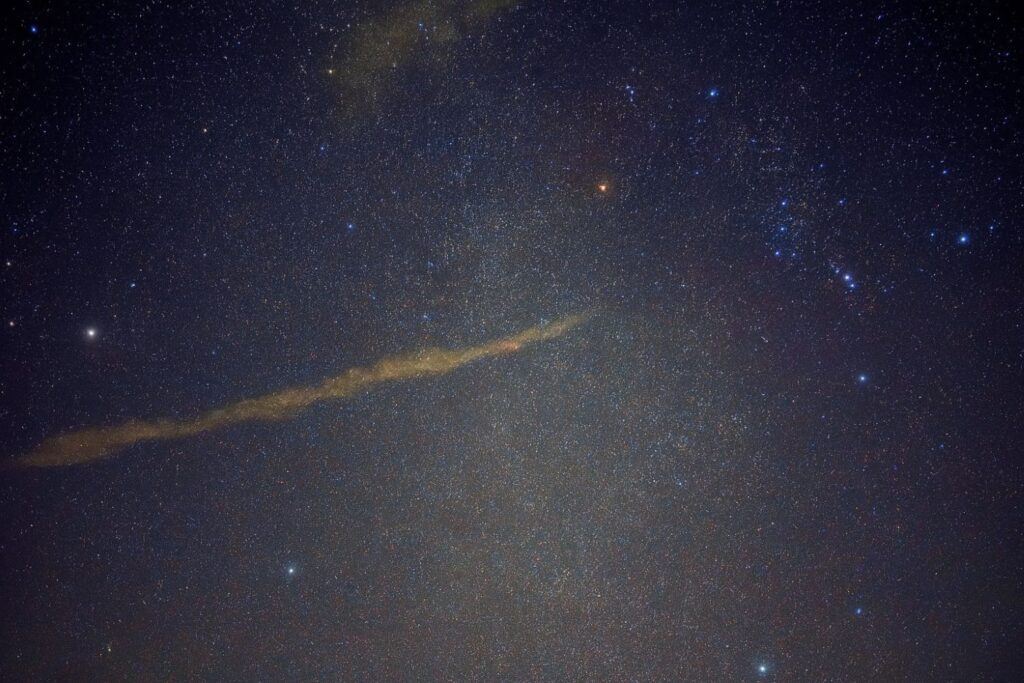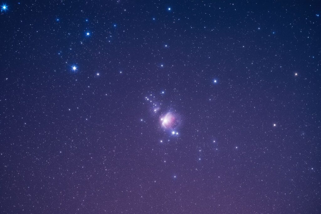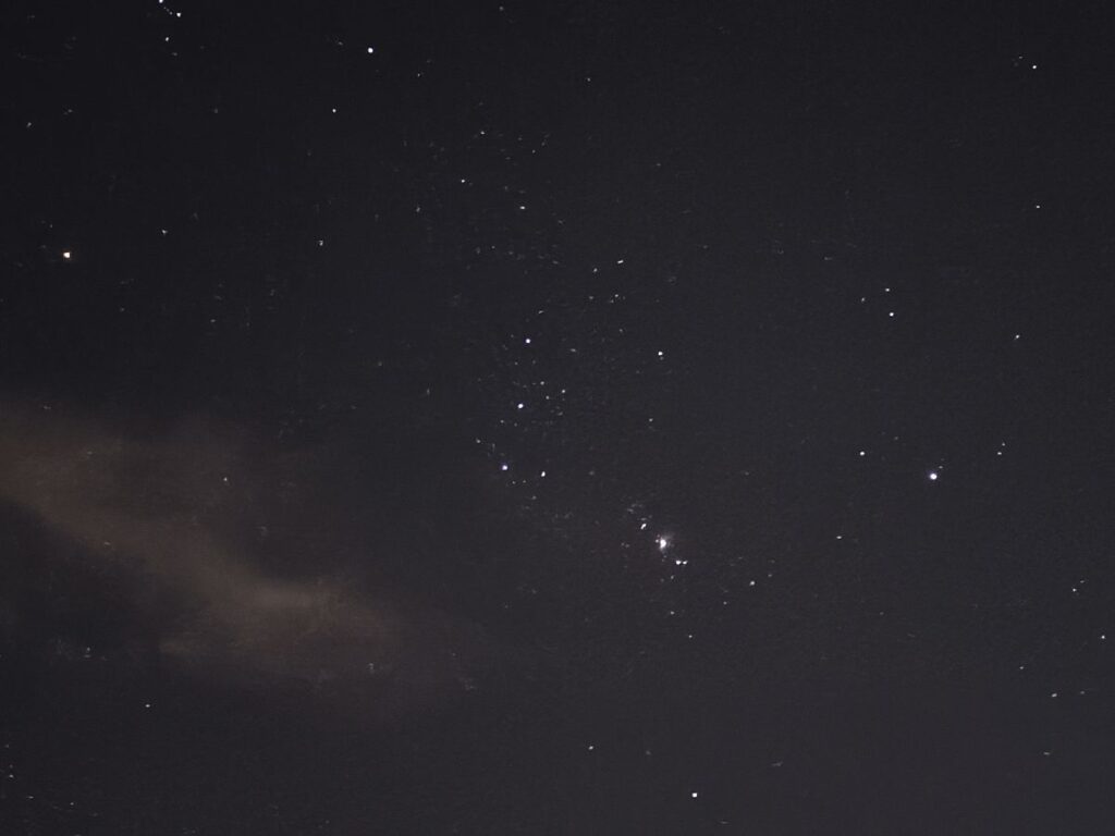 オリオンの3つ星のベルトと共にかろうじてオリオン大星雲が写っています。