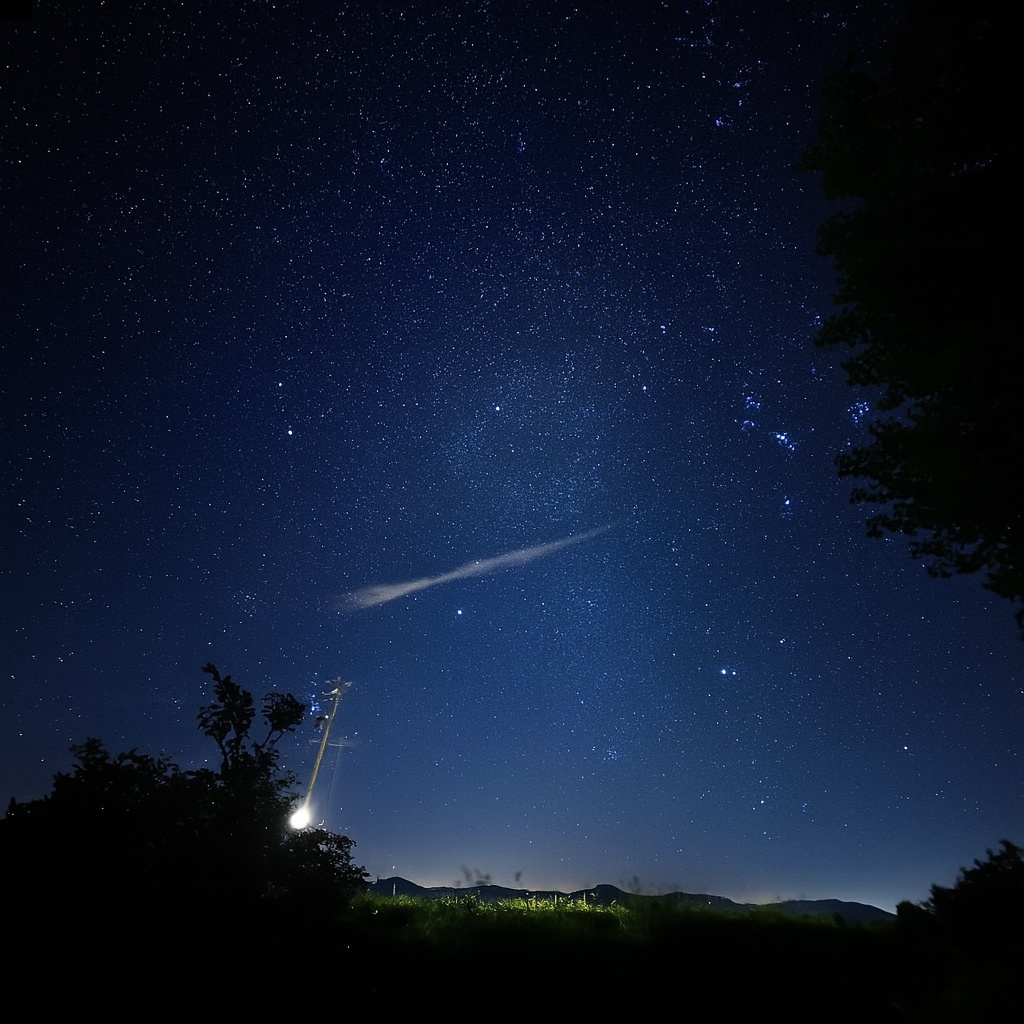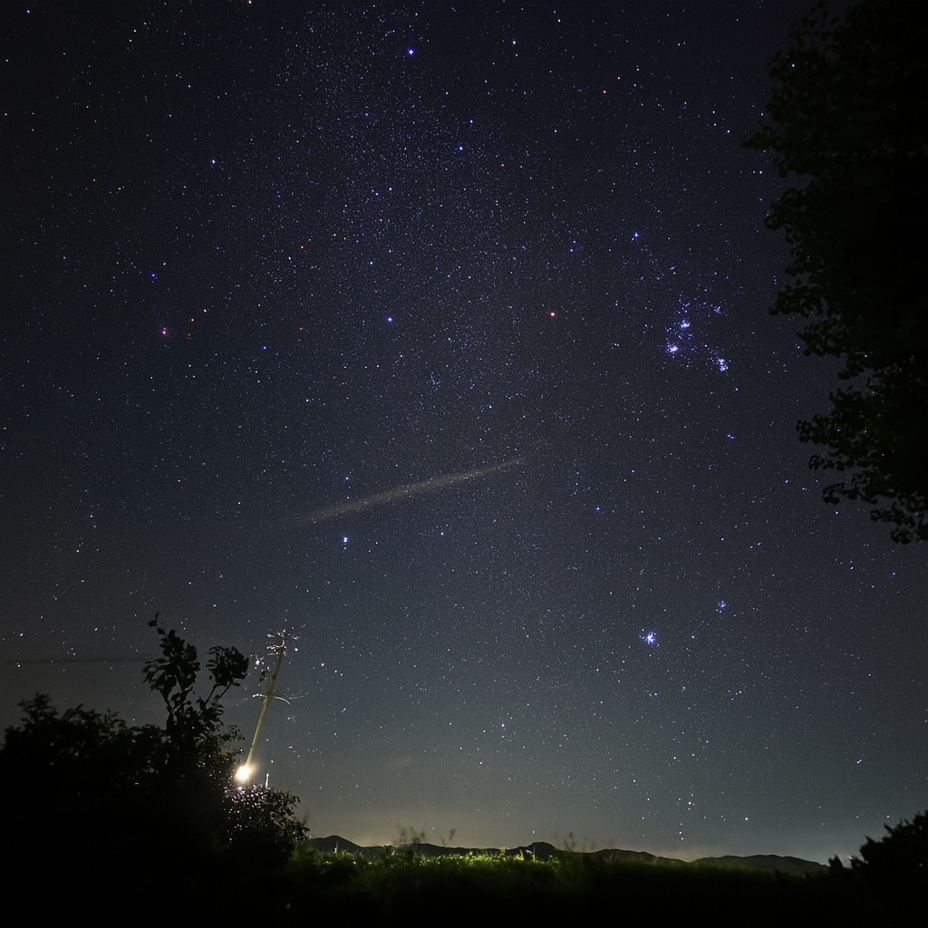 上の画像はコントラストを高くしたりシャドー部をより暗くしたりと少しだけ画像を補正していますが、AIで星を強調してもらうとこんなエモーショナルな画像に変身(^^;)