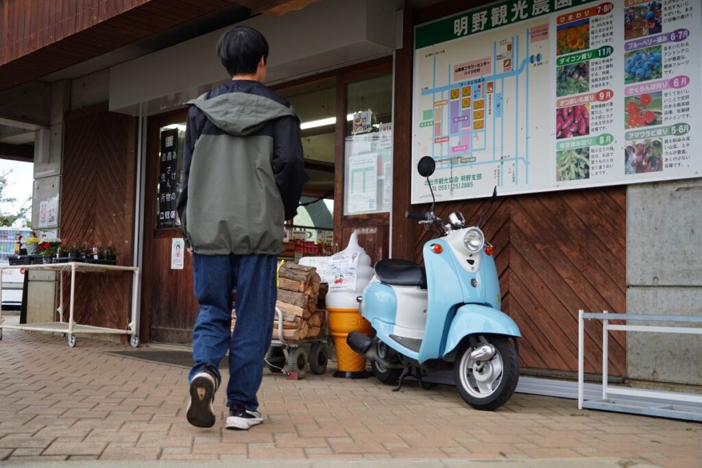 途中道の駅にらさきにて食事ができないか立ち寄るも、食事は終了していてソフトクリームはシャインマスカットソフトのみ作れると。