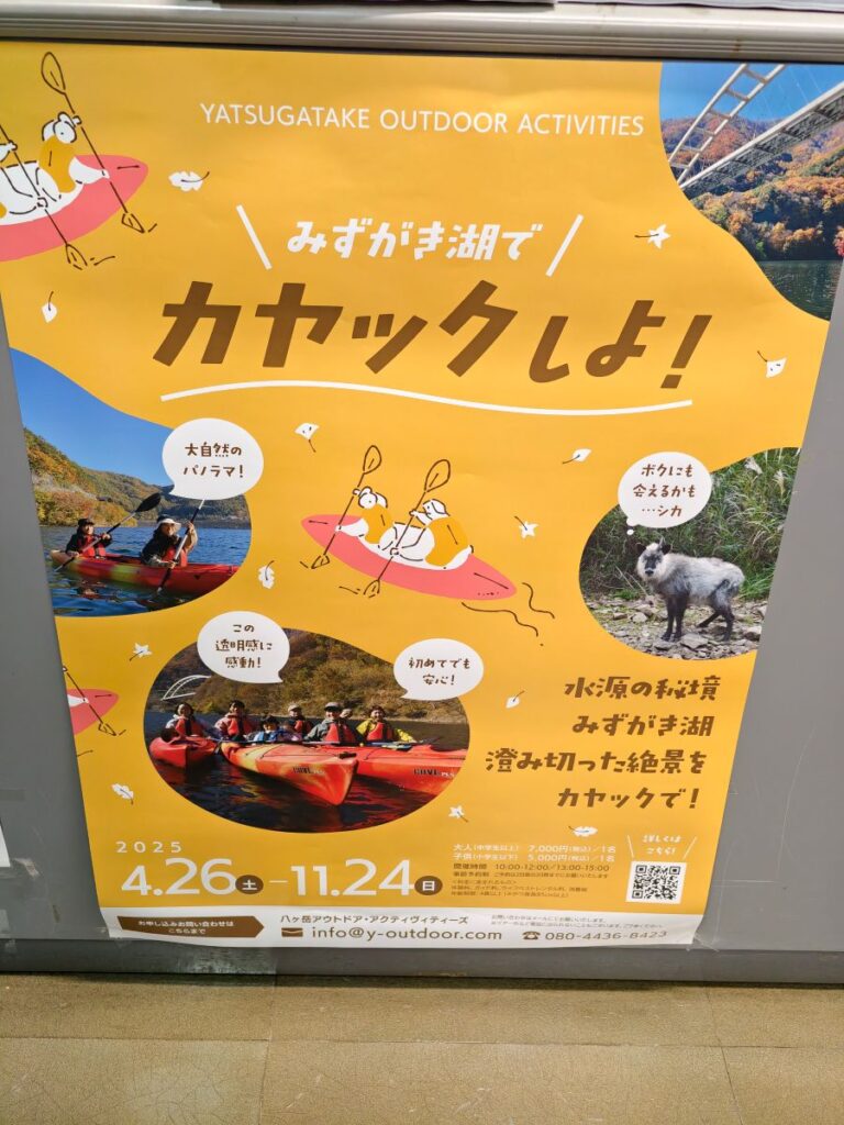 そこの売店に貼られていたこちらのポスターによるとあのみずがき湖でカヌーができると♪