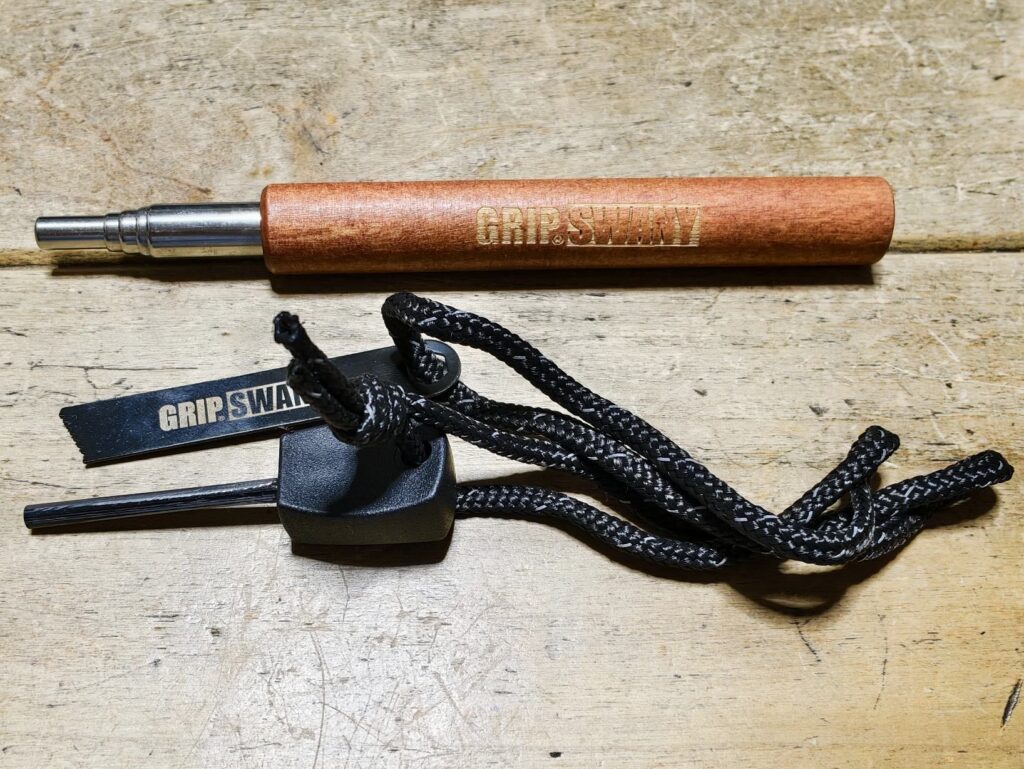 そしてこちらは2日目の荒井裕介さんのナイフ&焚き火ワークショップで頂けた火吹き棒(ファイヤーブラスター)とファイヤースターターです。