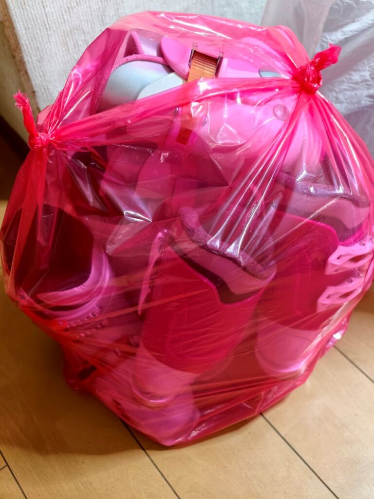 ゴミ袋に入れられて残念な子供たちの幼児用の小さいブーツたちも