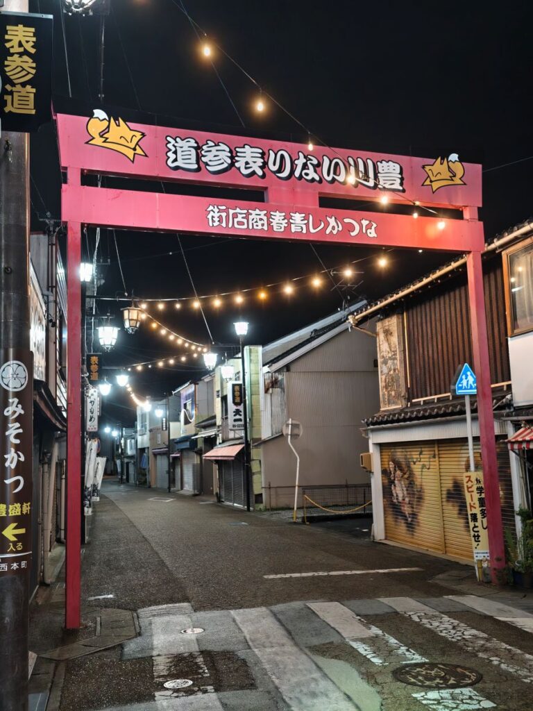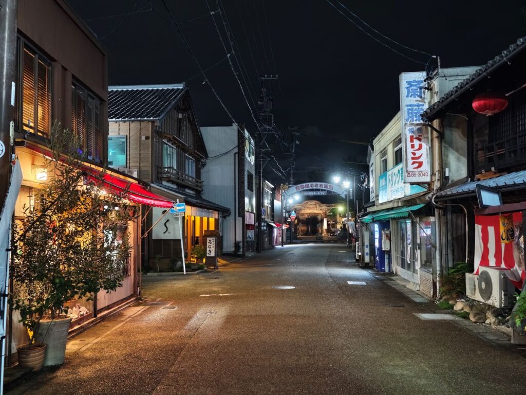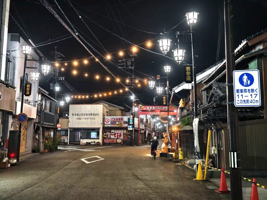 さすがに20時を過ぎているので人通りはありませんが、夜の門前町は楽しい思い出が多いのと、雰囲気があって結構好きです。
