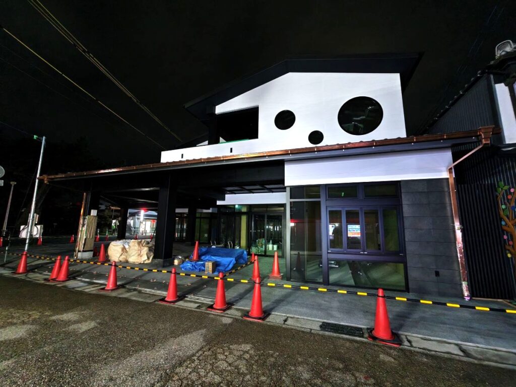 門前町のシンボル的存在のおきつねバーガーで有名ないなほ稲荷寿し(門前そば山彦)さんとヤマサのちくわさんの建物が、火事とは関係なく同じようなタイミングで店舗を全面改装中でしたが、かなり出来上がってきていました。