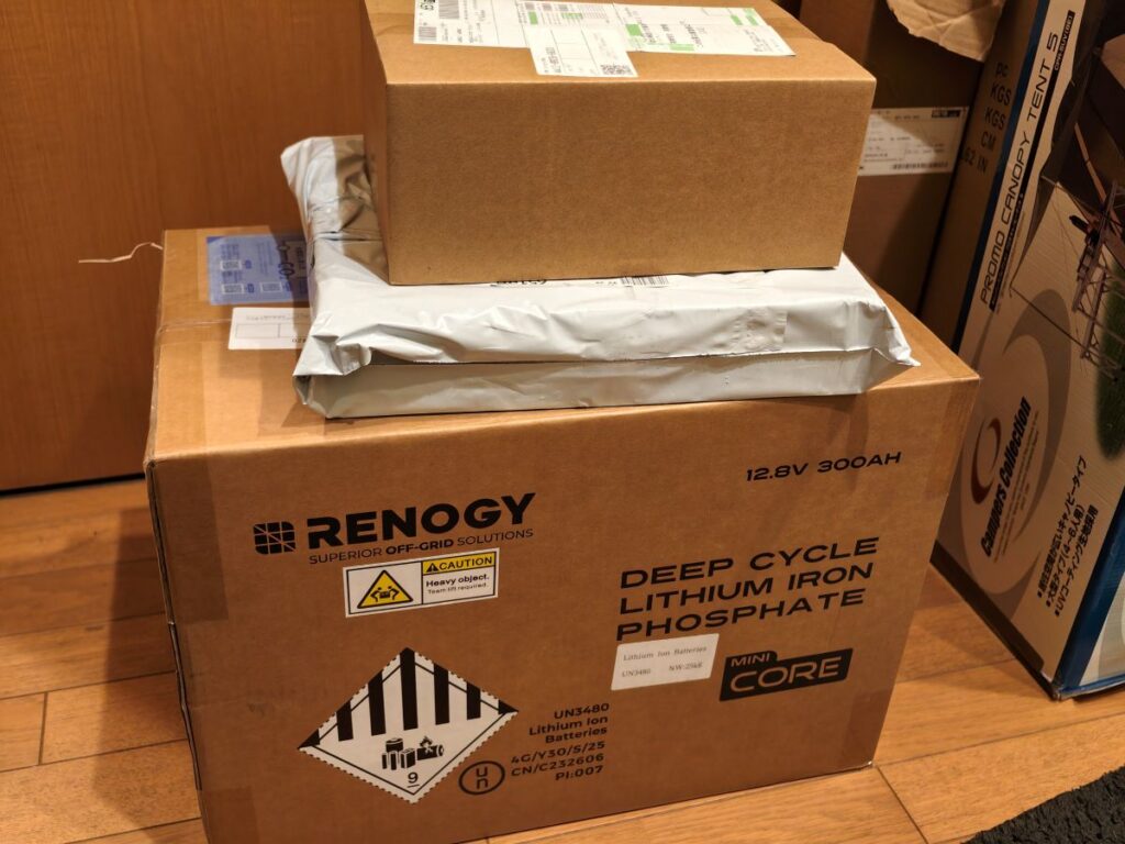 ということで、先日ここでも書いた通りキャンピングカークレアのサブバッテリーのリチウムイオン化を始動させましたが、その第一弾が早速到着