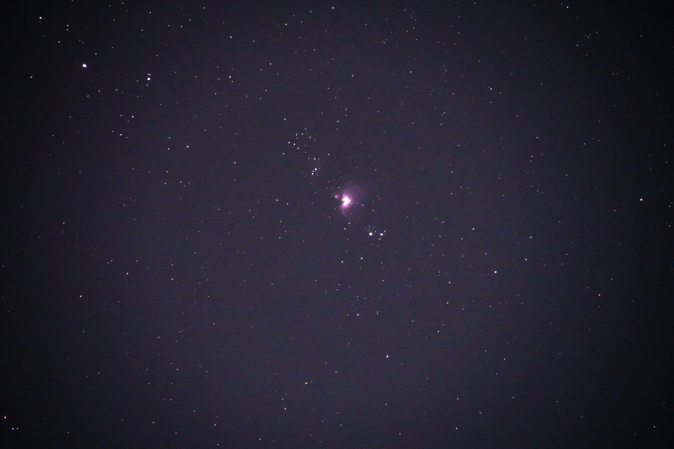 しかも望遠の240mm側でも星をとらえてくれて、このようにオリオン大星雲を真ん中に持ってくることができました♪