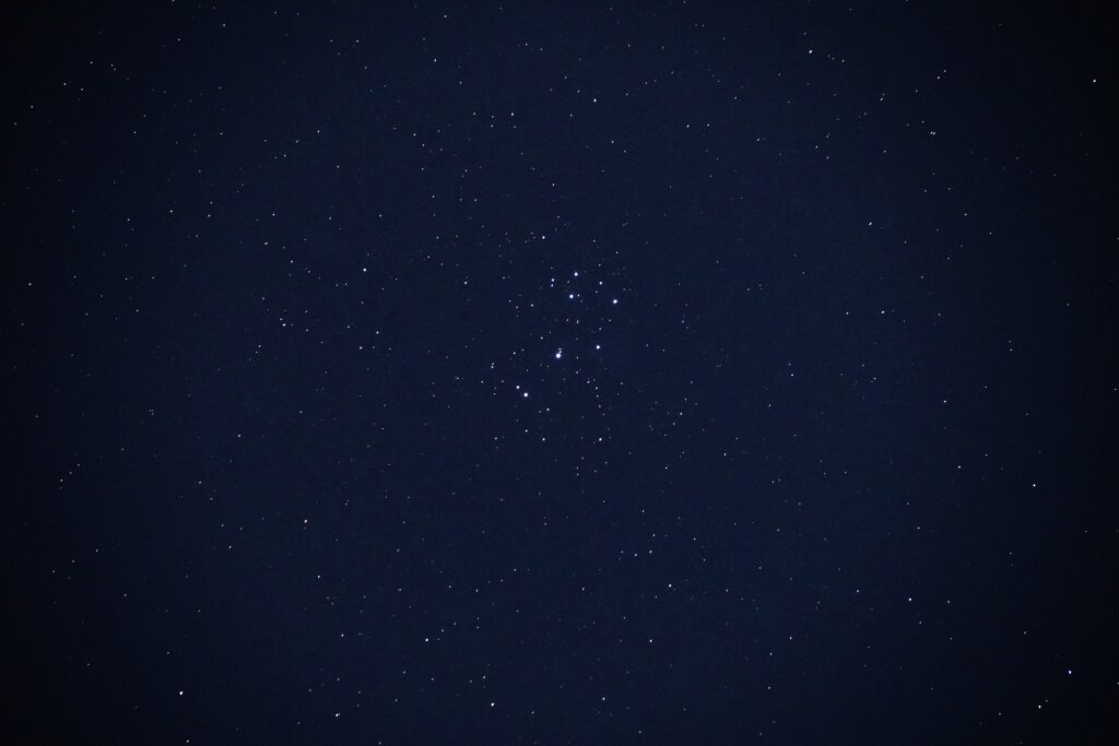 そしてこのオリオン座の上にあるスバル:プレアデス星団もよく見る青い星間物質までは表現できませんでしたがこんな感じで撮影できました♪