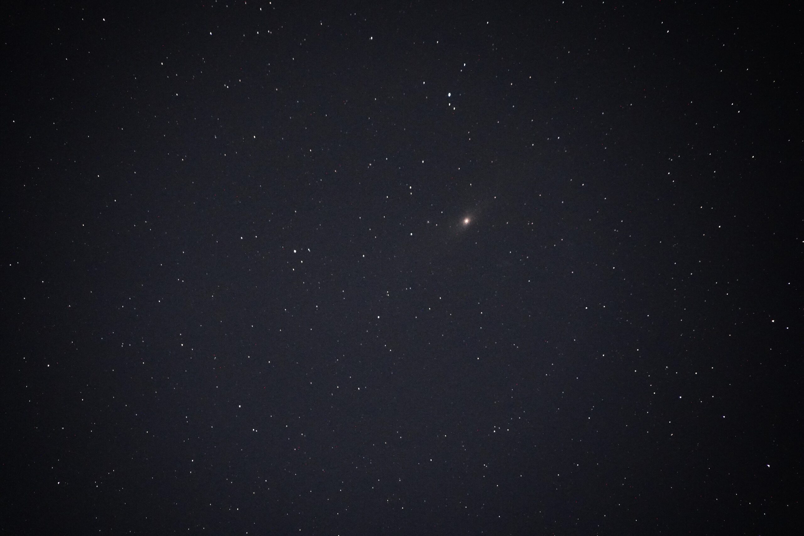 更に調子に乗って、この時期の夜の早い時間に天頂付近にやってくるアンドロメダ銀河もこんな風に撮影できました。