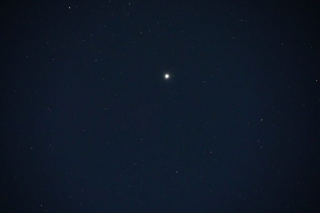 普通に星空を撮影したら木星が明るすぎて小さい太陽のようになってます(笑)