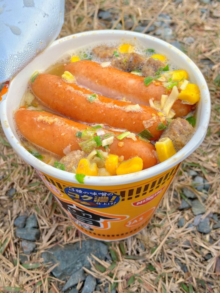 ウィンナーの出汁が出てカップ麺の味に深みが出るとか出ないとか(^^;)