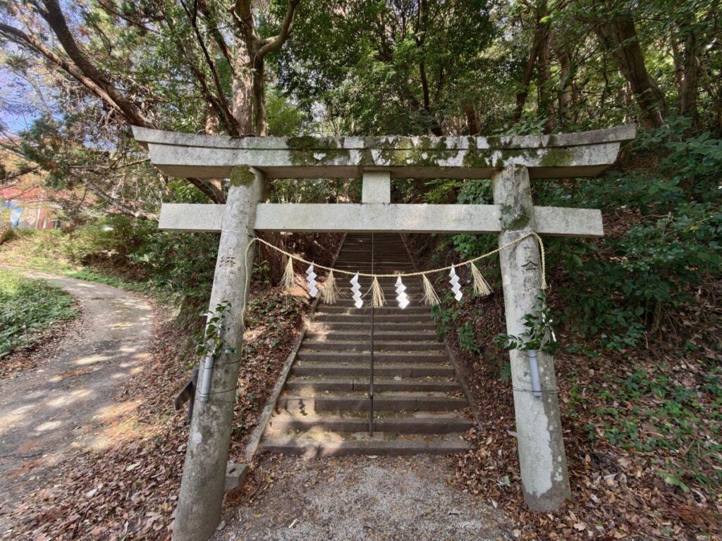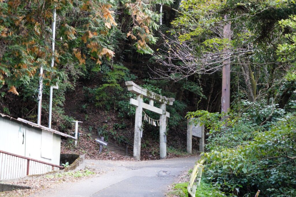 登山道はこの車道のすぐ上の石巻神社のこちらの鳥居くぐって上っていくルートです。