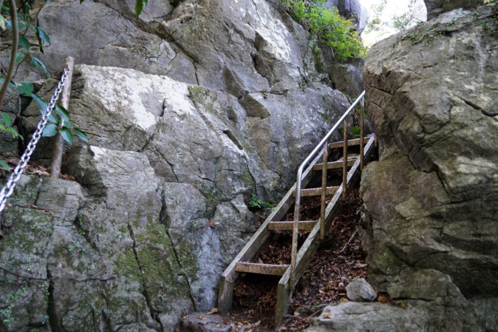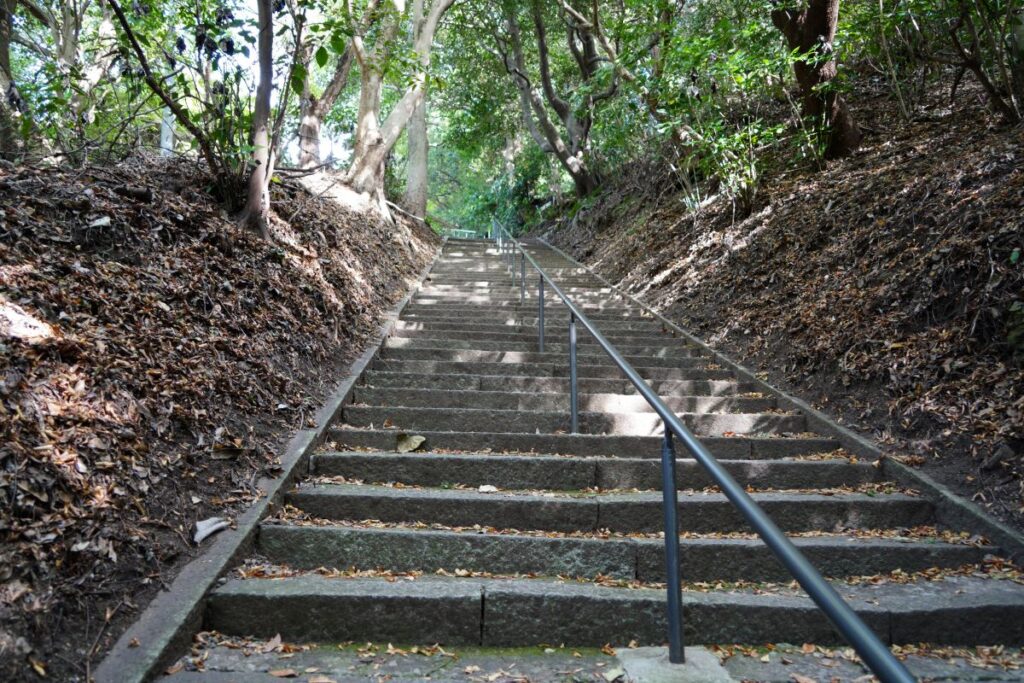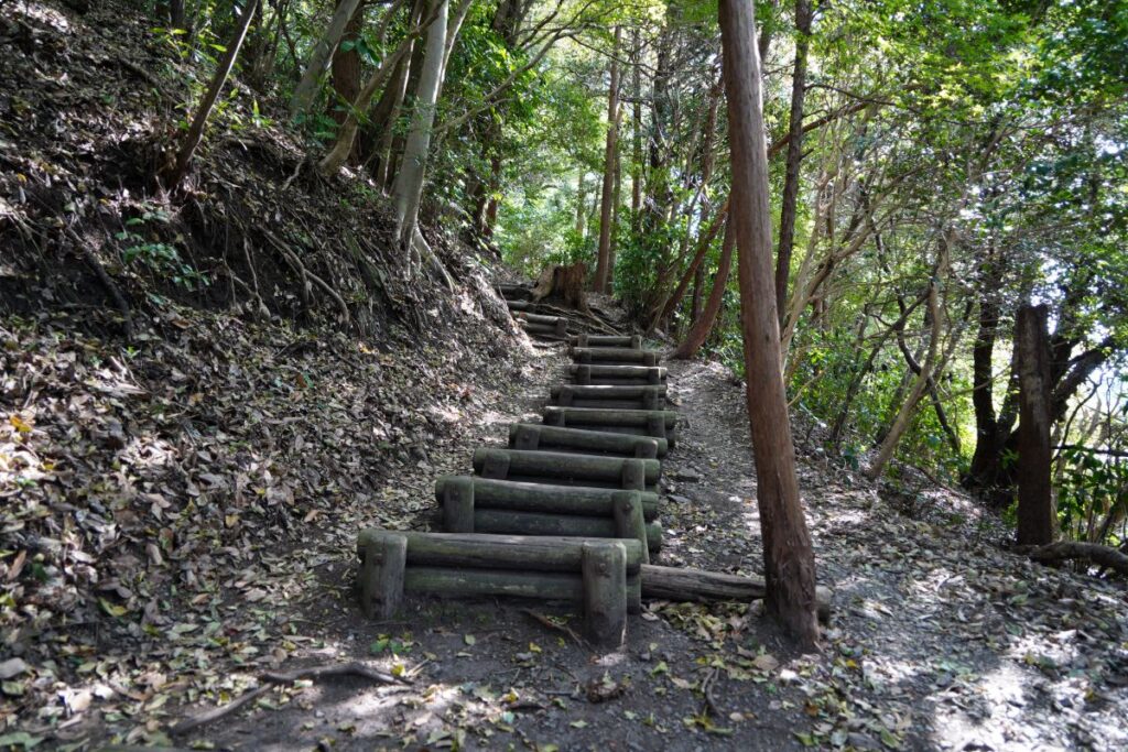 こんなに急なのでこの階段が無かったら登るの厳しかったろうな。