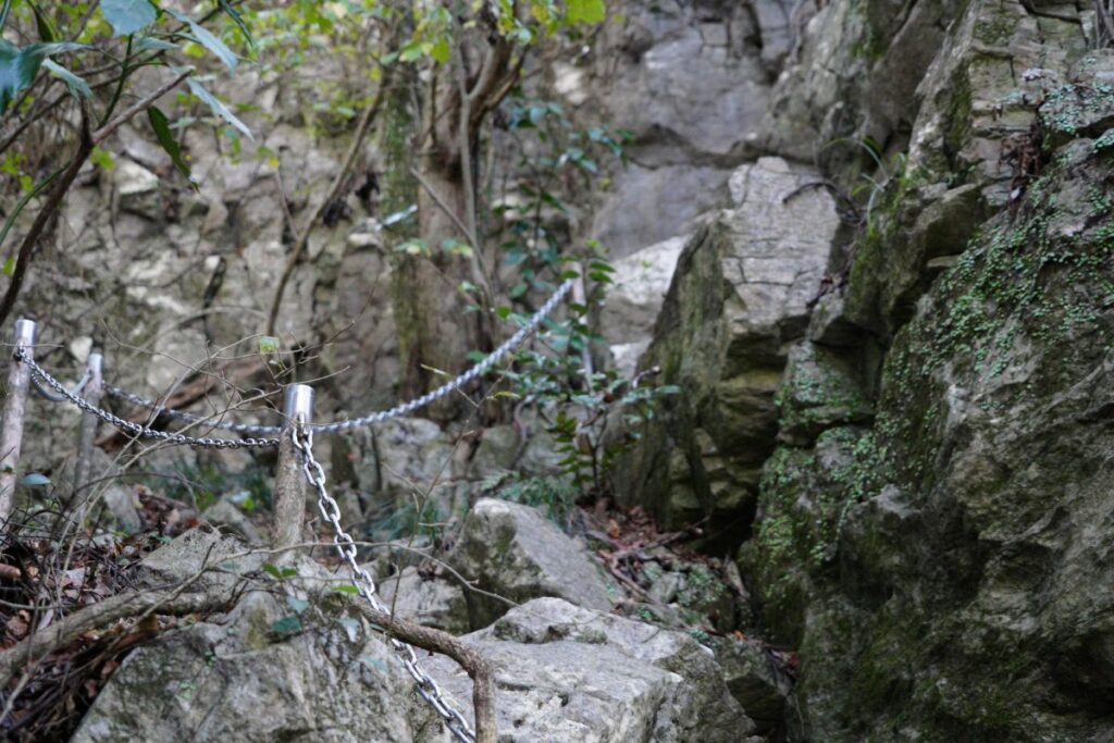 そして滑りやすそうな岩場にはロープが掛けられていました。