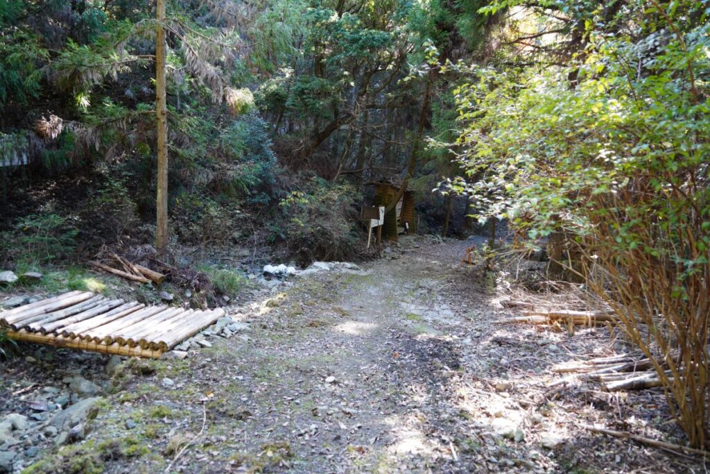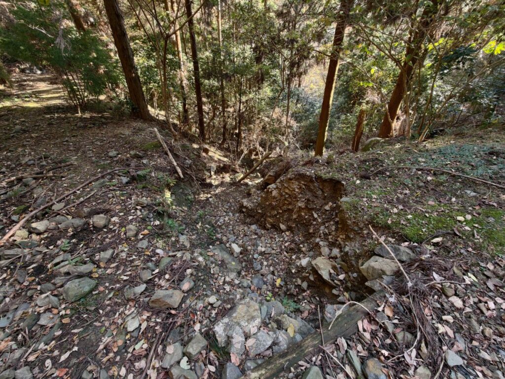 更にかつての林道を歩いて行くとこんな濁流に林道が侵食された箇所が現れたりします。