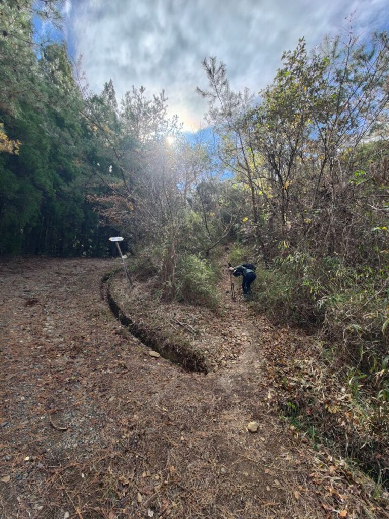 林道を歩いて行くと途中でこんな登山道との分かれ道に