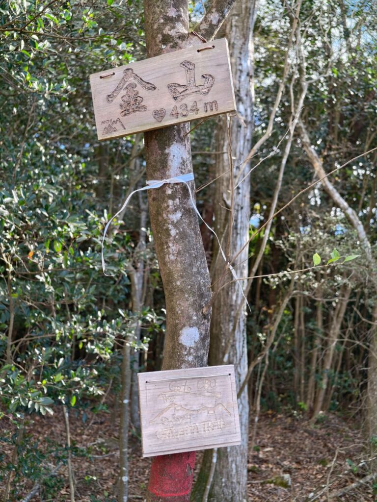 そしてここが金山の頂上であることを示す看板が。