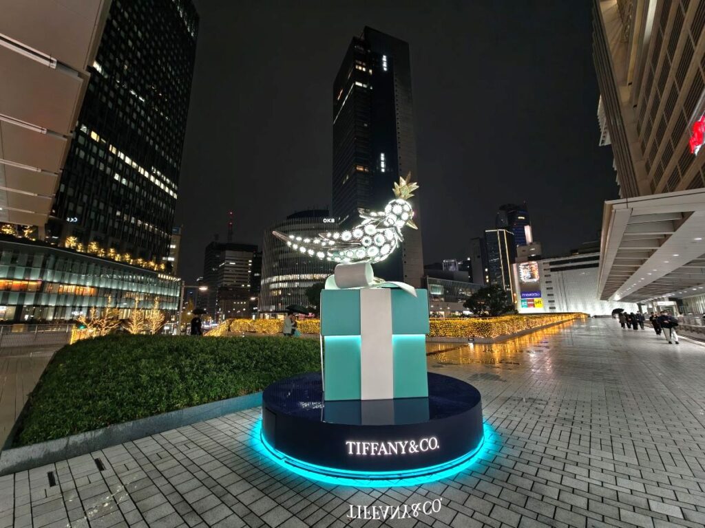 雨が降って水たまりができていたのか、電気仕掛けかと思うほどくっきりTIFFANY&CO.の文字が反射していました。