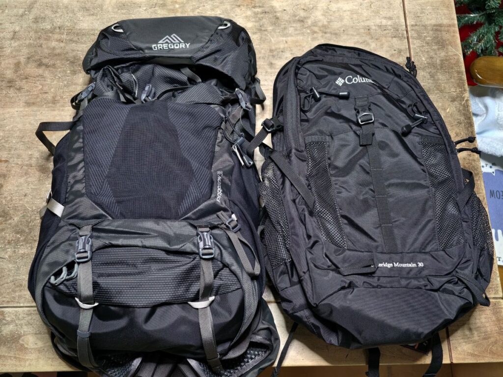 そして最近購入した奥さんの30Lのザックと比較するとこんな感じ