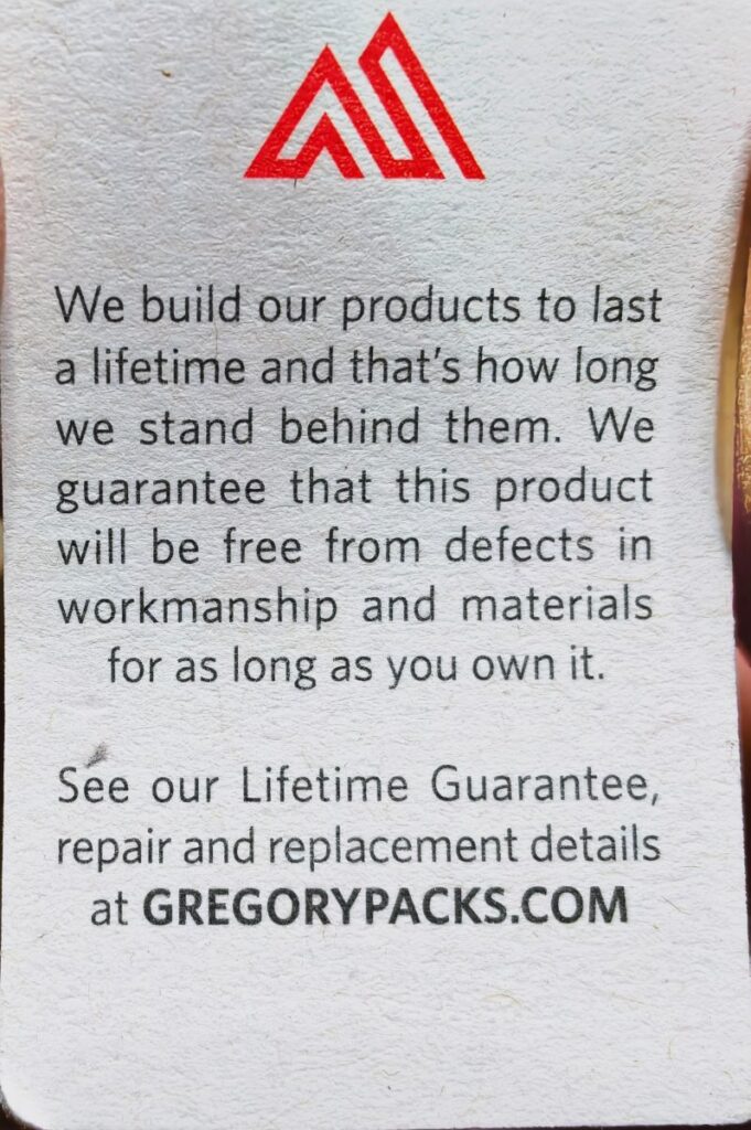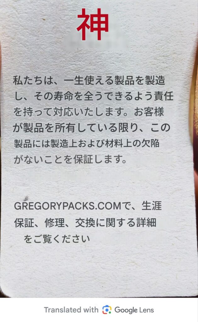 グレゴリーのロゴが「神」と訳されているのが笑えますが、永久保証とは太っ腹な。