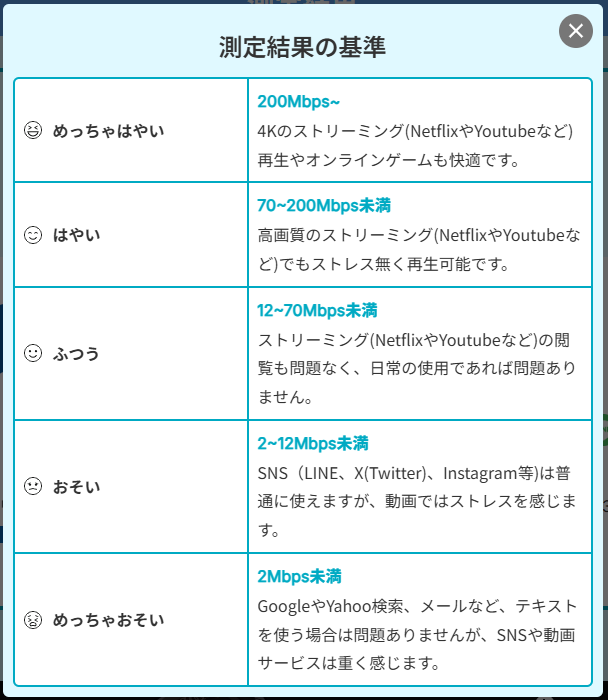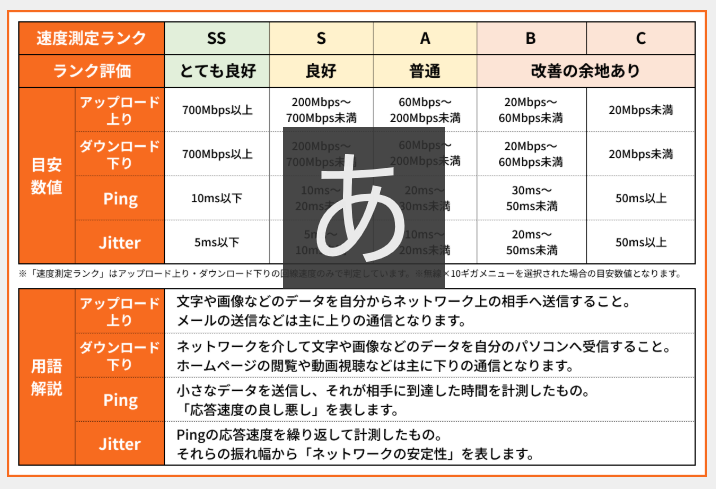 コミュファ光の判定基準としては10GBプランとしてはベストではないもののSランクで良好の判定基準になります。