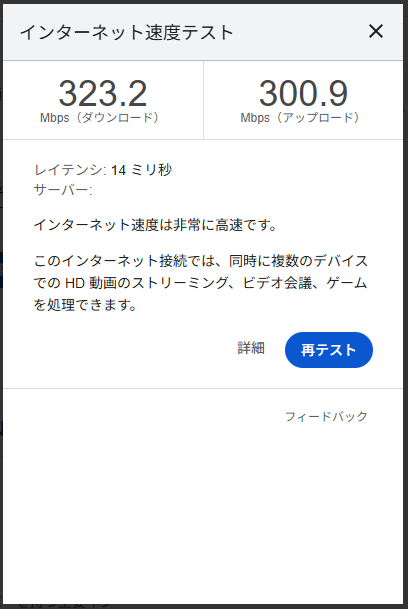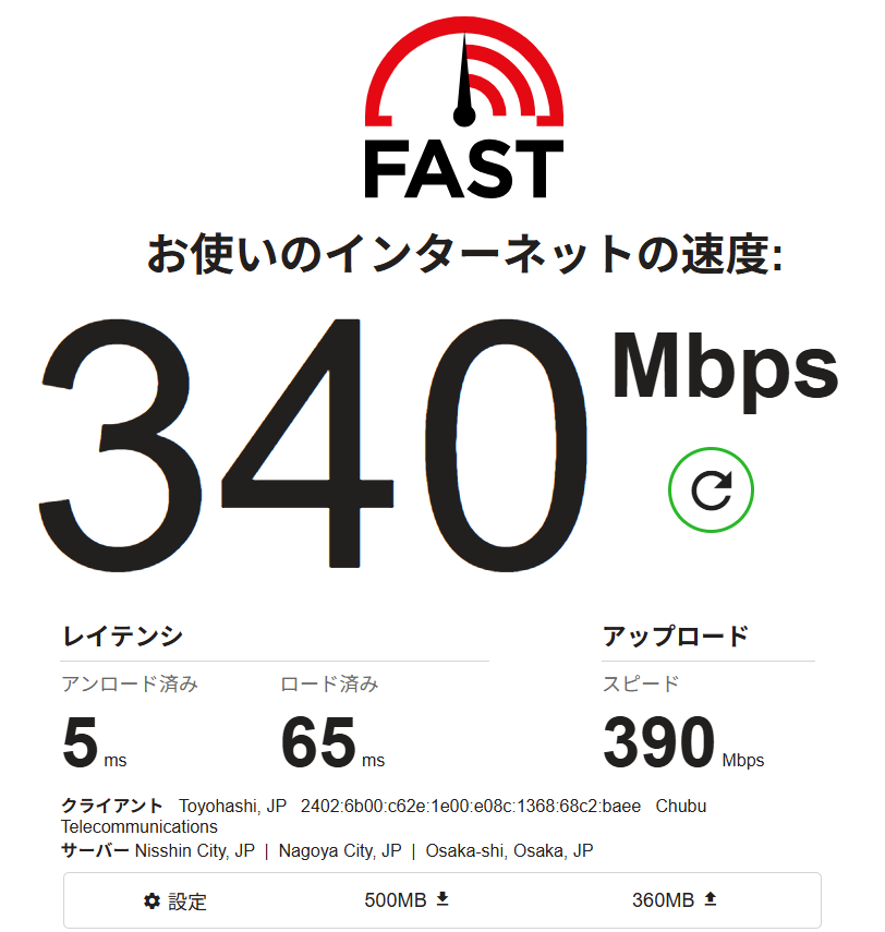 しかし以前同様のwifi環境は取り戻しましたが、コミュファ光の300Mbpsのコースから10Gbpsコースに変更したのに体感的には変化はなし(-_-;)