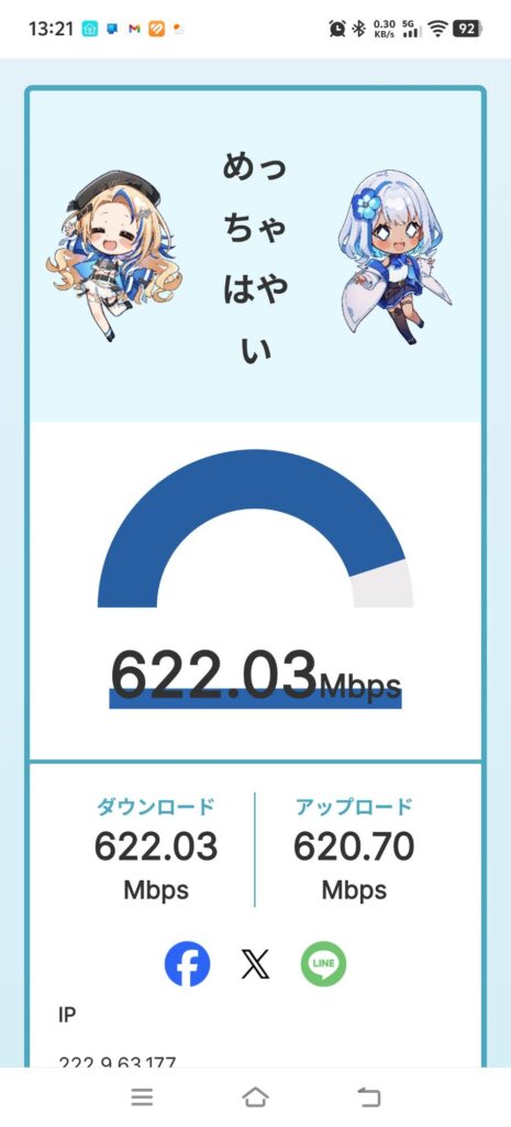 そしてgoogleさんの測定サイトでの測定結果がこちら