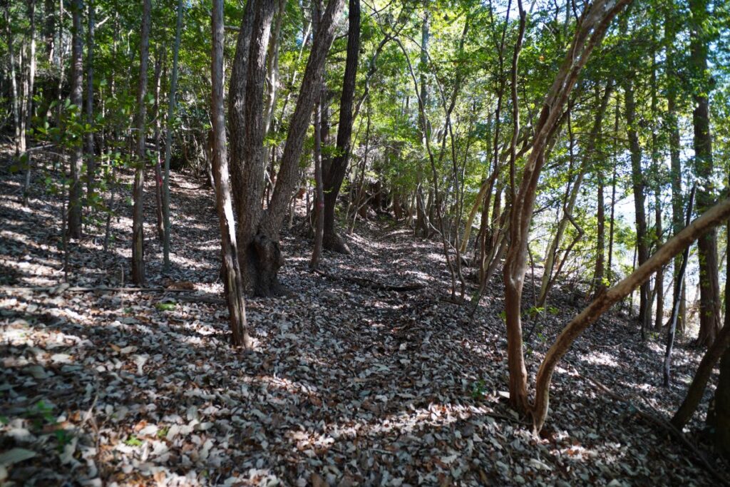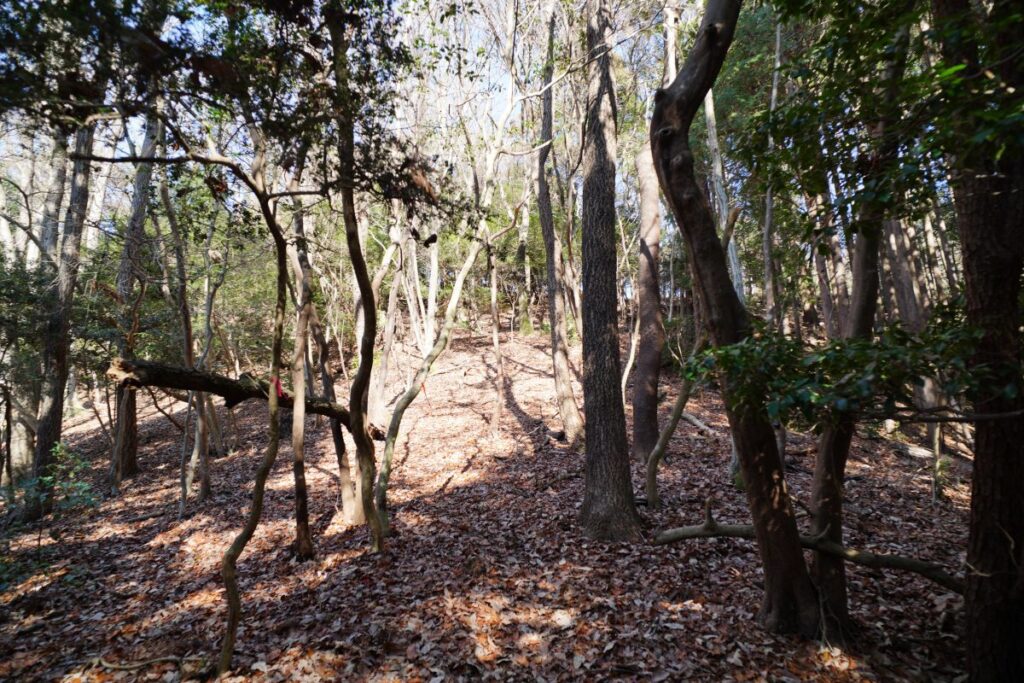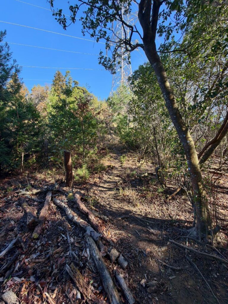 ただの森をさまよっているような雰囲気の中、なんとか踏み跡をたどって登っていくと高圧電線が近づいてきて踏み跡もしっかりしてきます。