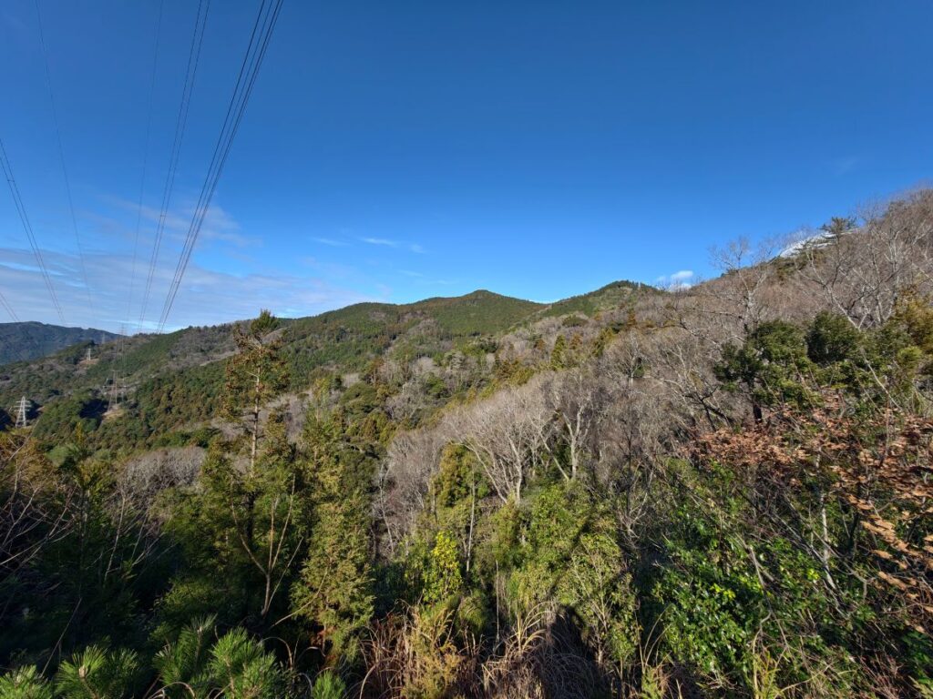 よくこんな山奥に電線通せるよな~と感心しつつ山登りを続けます。