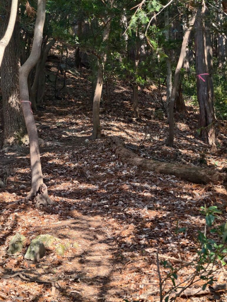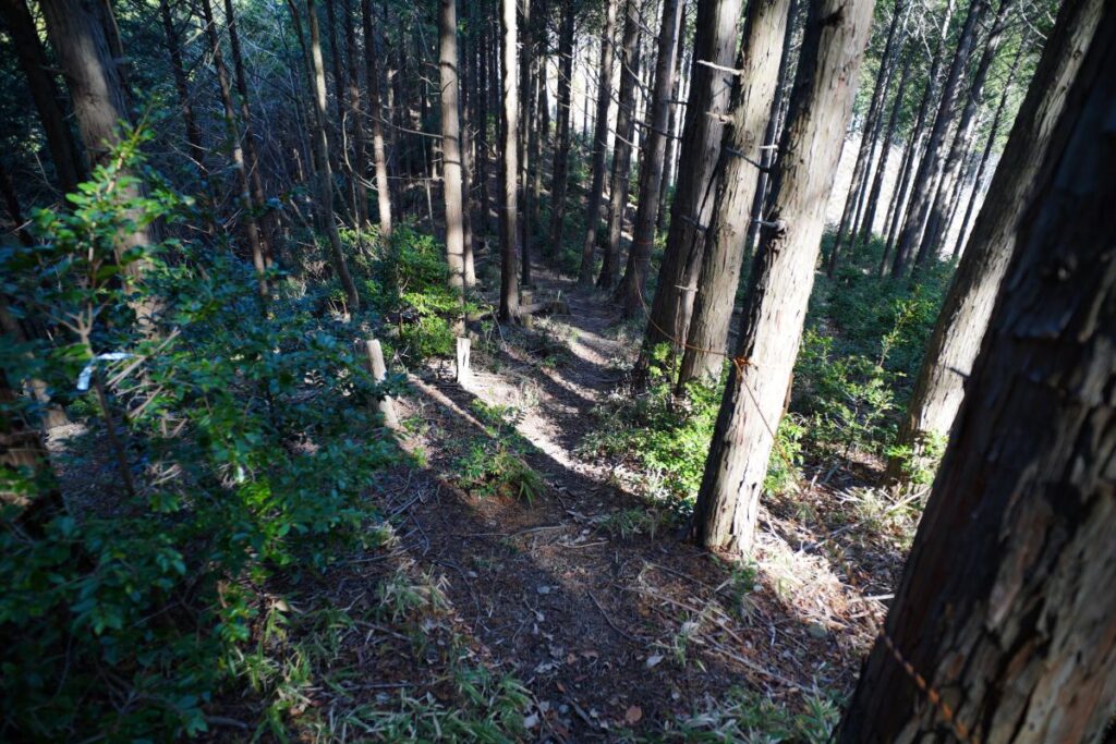 先ほどの舗装路はあそこまで車で来られるのでこういう資材を運んだりするための林道なのかなと。