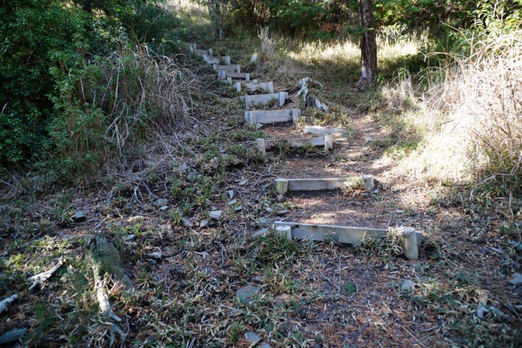 多分こちらがメインの登山ルートらしく、こんな感じでしっかり階段が作られていました。