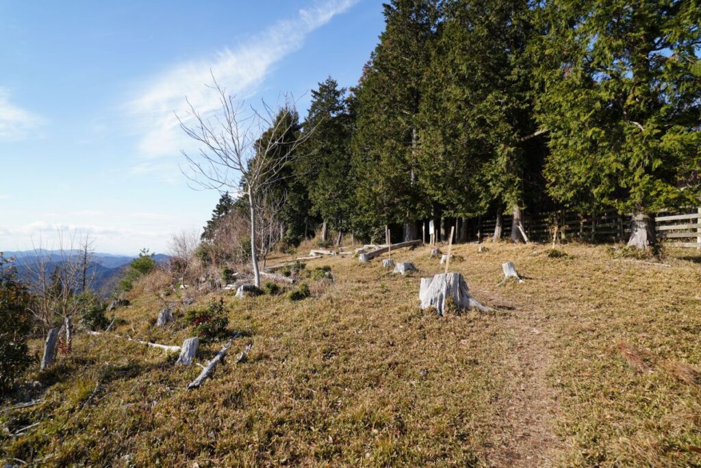 下り切った後に、森が伐採された箇所に出ました。