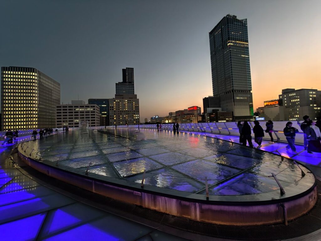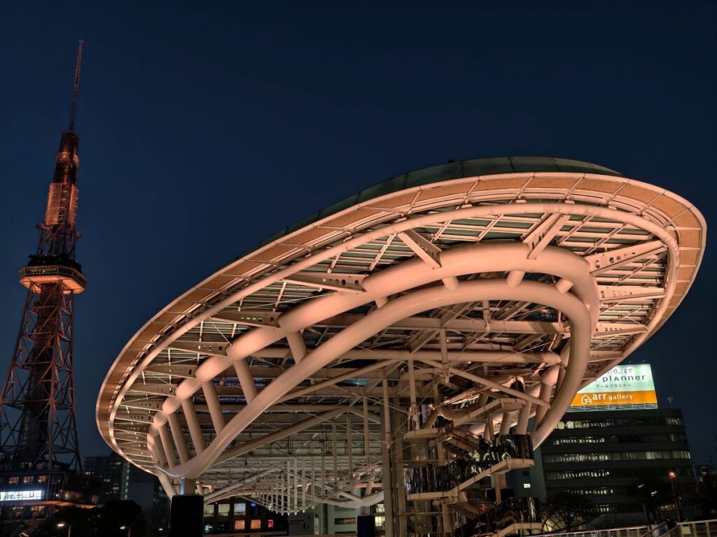 この後は、せっかくなのでこの上に登って名古屋の観光名所「水の宇宙船」展望台を堪能することに。