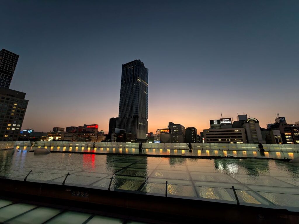 17時を過ぎていたので外に出ると辺りはすっかり夕方になっていたので、こちらの栄名物オアシス21で休憩することに