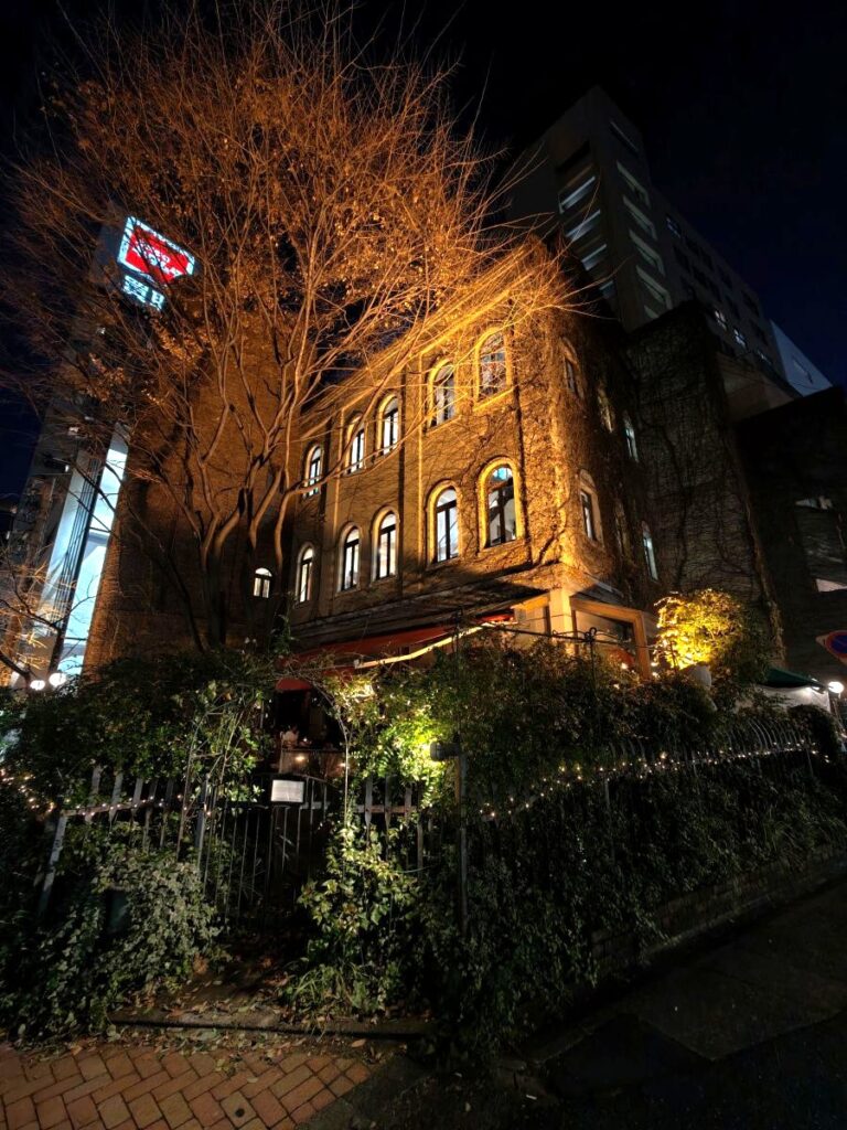 レンガの建物がライトアップされてきれいなダイニングバー「air cafe(エールカフェ)栄店」