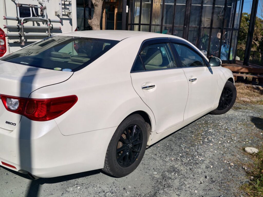 我が家の車はキャンピングカーにはスタッドレスタイヤを履かせているのですが、日常で奥さんが使うマークXはノーマルタイヤだけしかありません。