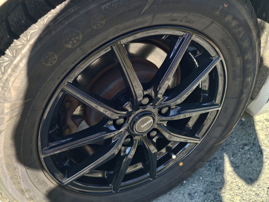 スタッドレスタイヤはMAXTREKという中国のタイヤメーカーですが、2024年製で山がだいぶ残っていたので、ちゃんと装着できるのであればまあ問題ないかなということで決定。