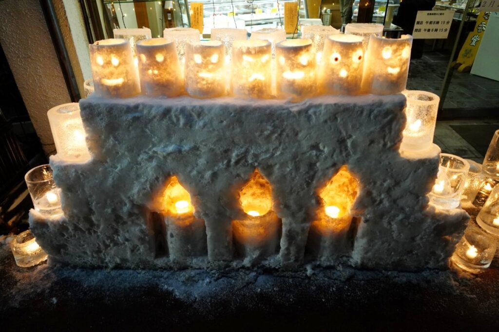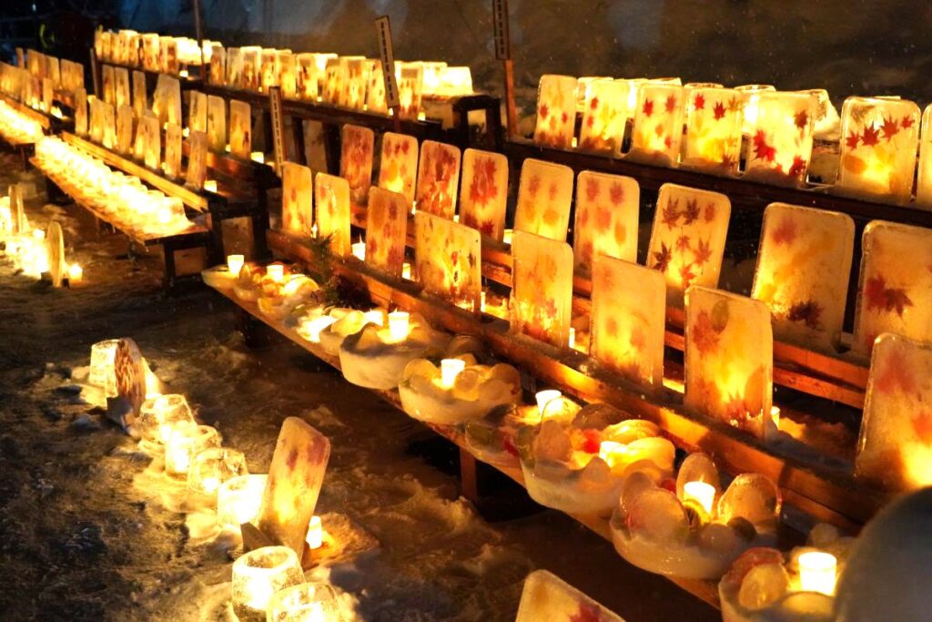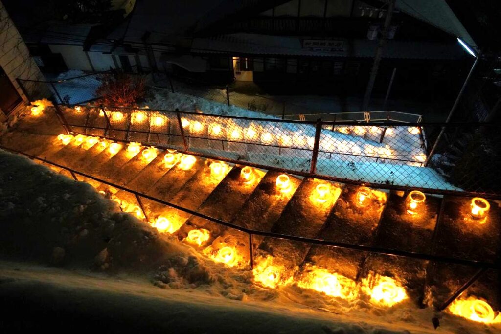 階段にもアイスキャンドルが灯されていてとてもきれいです。