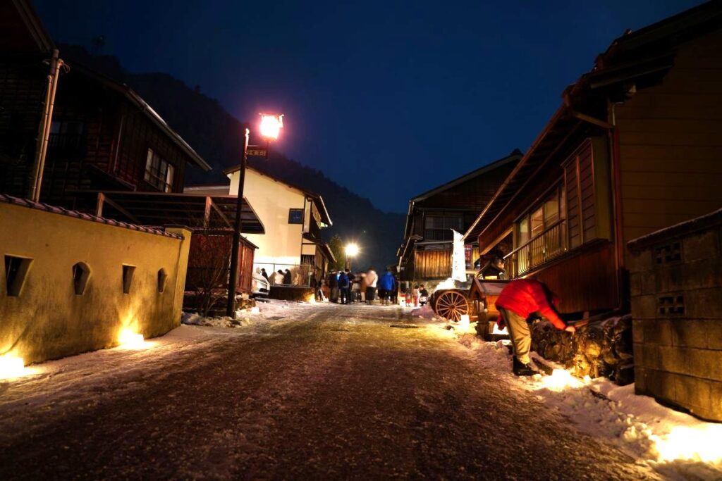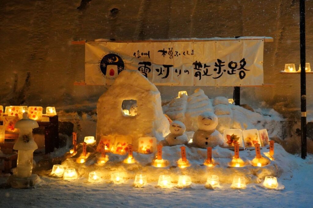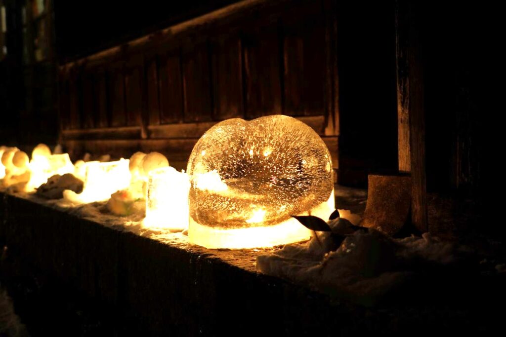 何より中山道木曽福島宿の歴史を感じさせてくれるこの古い町並みの雪景色とアイスキャンドルがマッチしていて素敵です。