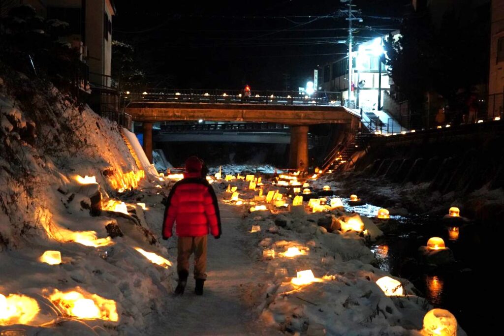 昨年は確かソースケと二人で出かけて木曽福島スキー場で滑った後に、木曽ふくしまの街に繰り出して雪灯りの散歩路に参加したのでした。
