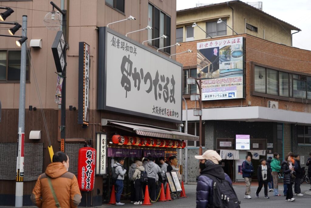 こうして新世界の一番端まで歩いて行って戻って来たのですが、こちらの串かつ屋は大人気でした。