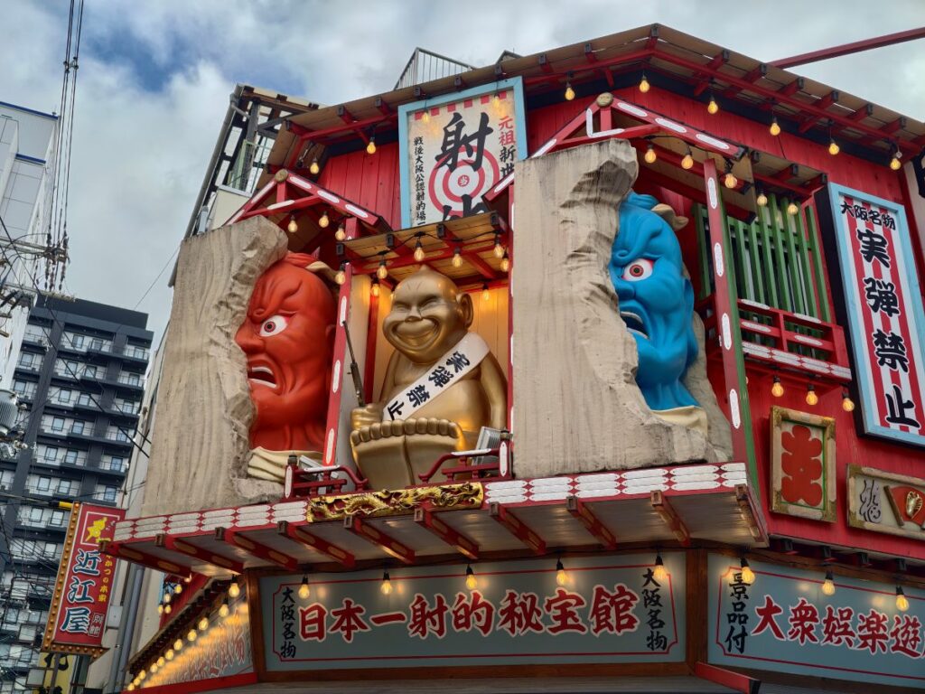 鶴と亀の立派な木彫り風看板も凄いし、あちこちにいるビリケンさんと謎の仁王様?