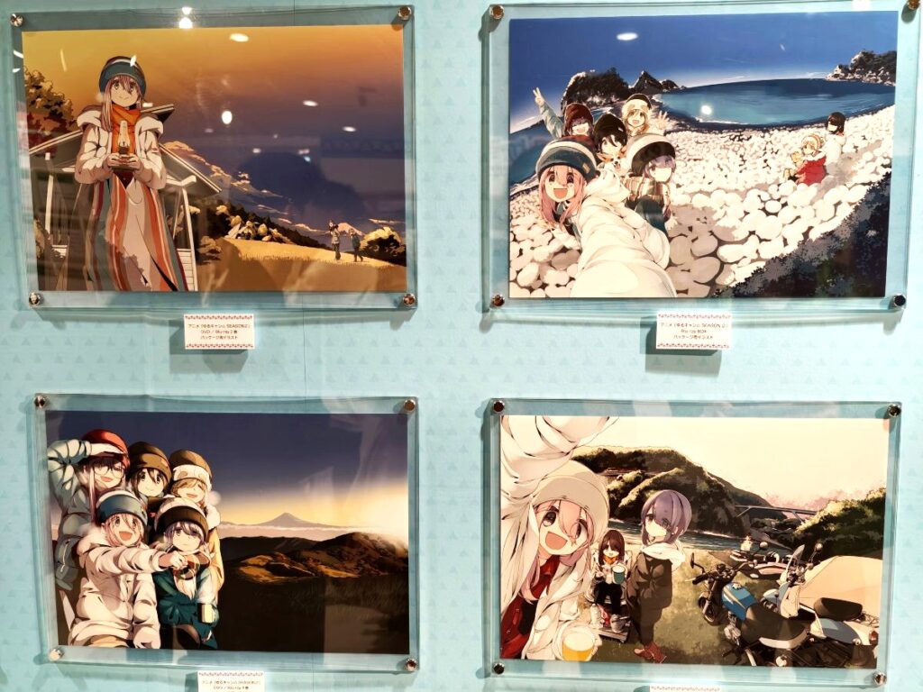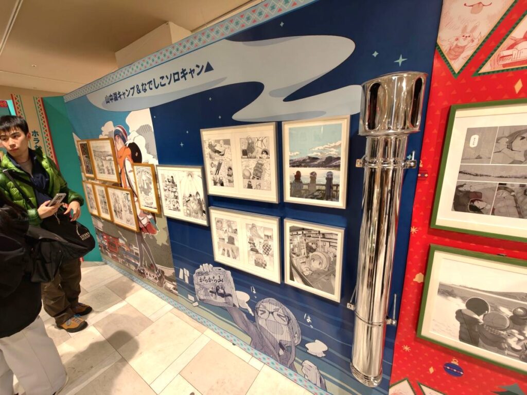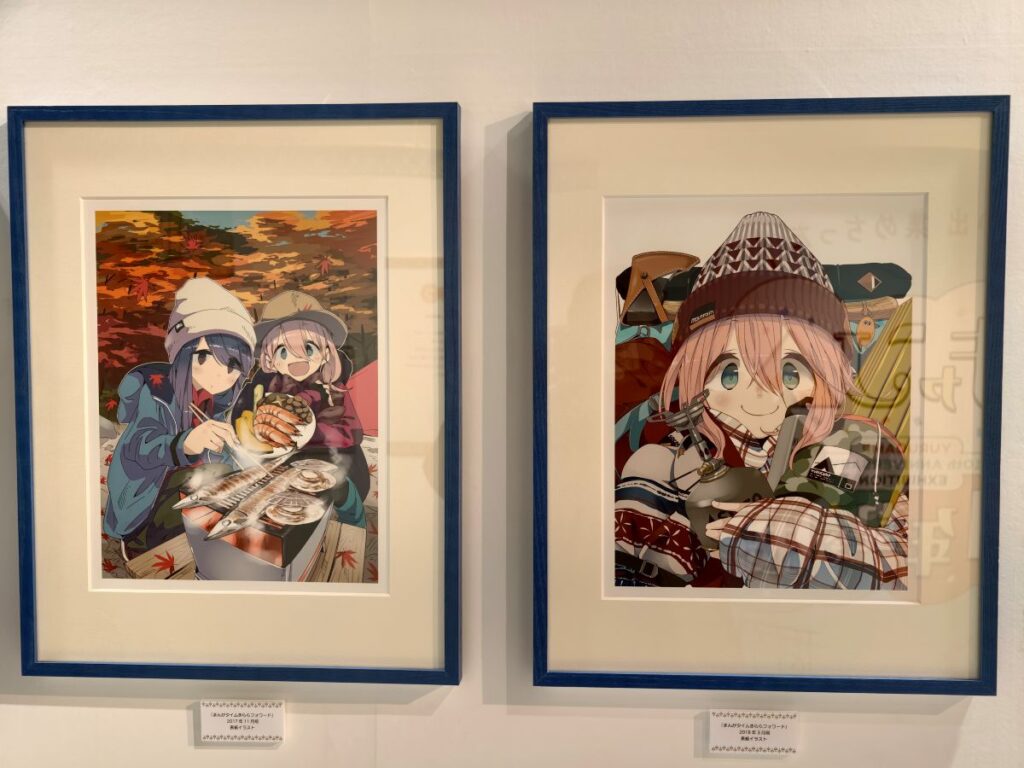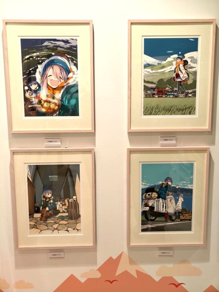 そしてゆるキャン△10周年記念展らしく、リンちゃんやなでしこ、野クルメンバーの楽しそうなキャンプイラストがてんこ盛り♪