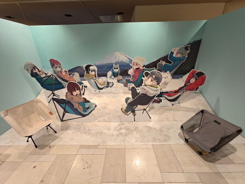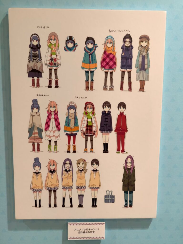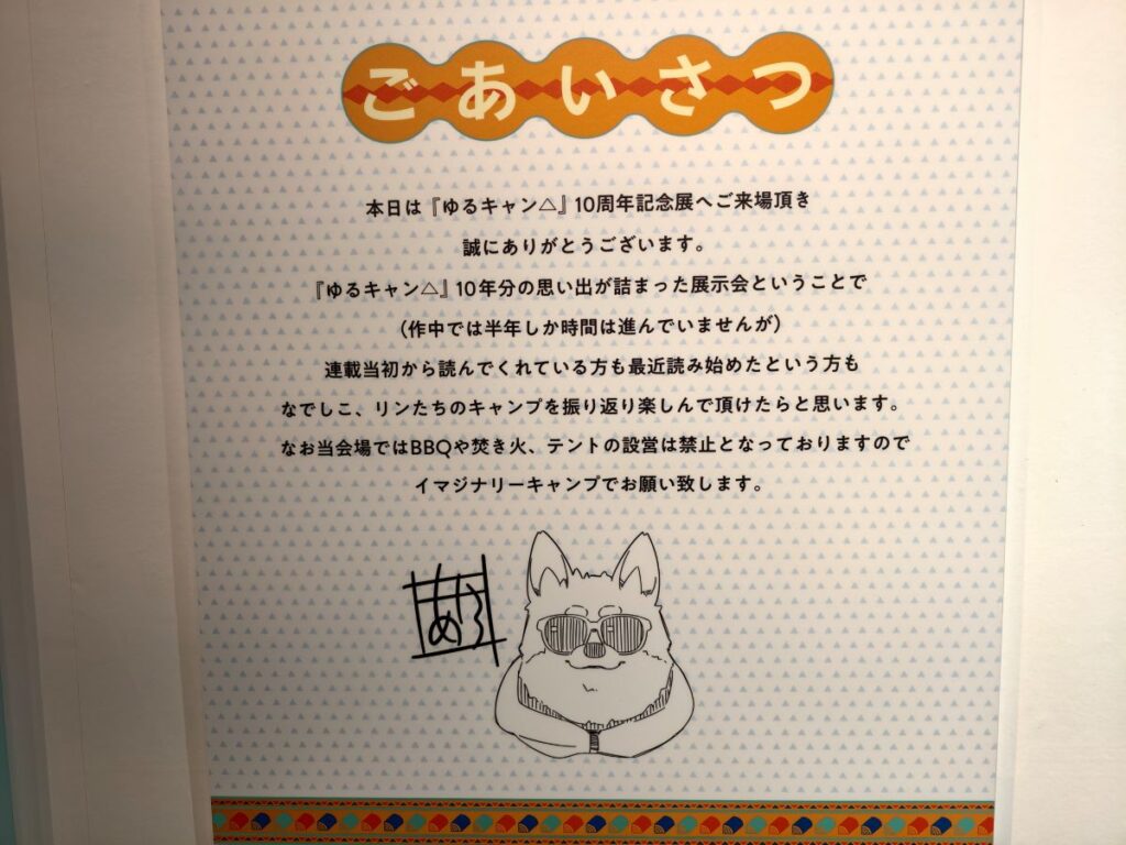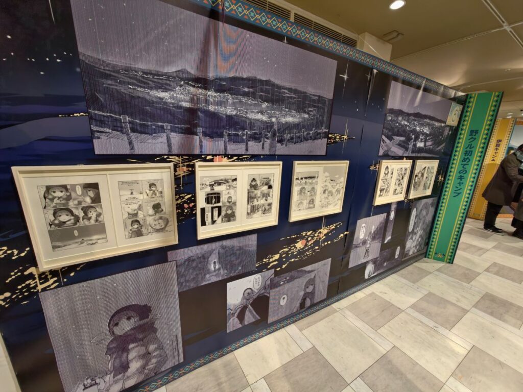 そしてゆるキャン△10周年記念展らしく、リンちゃんやなでしこ、野クルメンバーの楽しそうなキャンプイラストがてんこ盛り♪