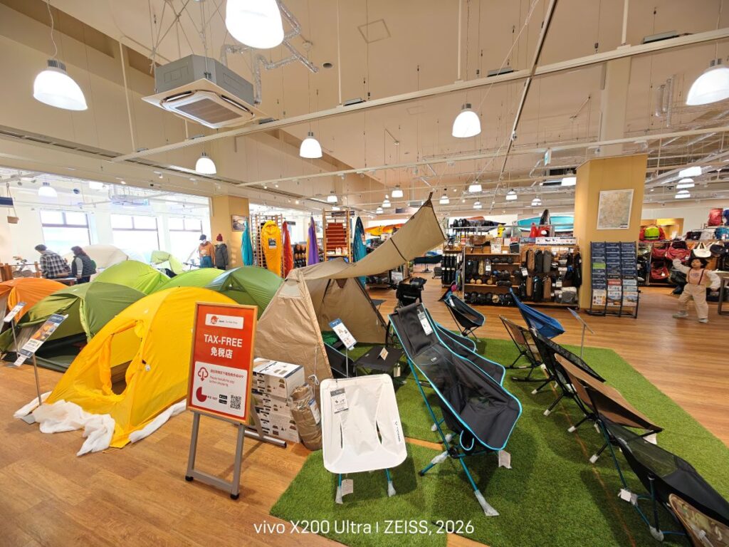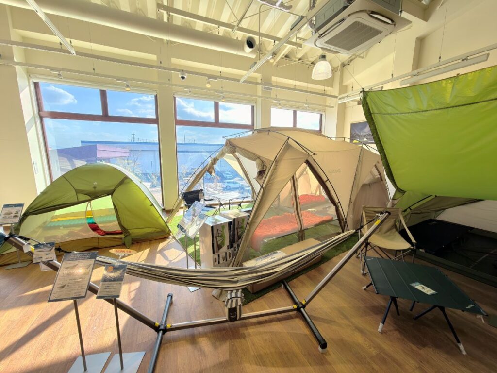 広い店舗を活かして、実物テントやファニチャーが沢山設営ディスプレイされて見ごたえがありました。