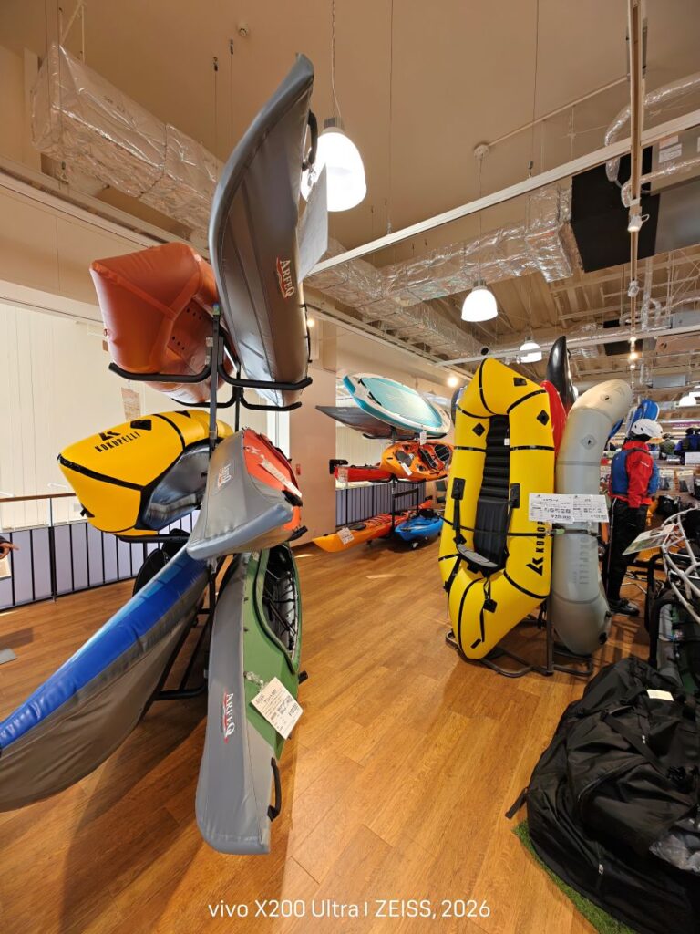 モンベル直営店でここまでカヌー、カヤックが展示されているのを見たことがありません。