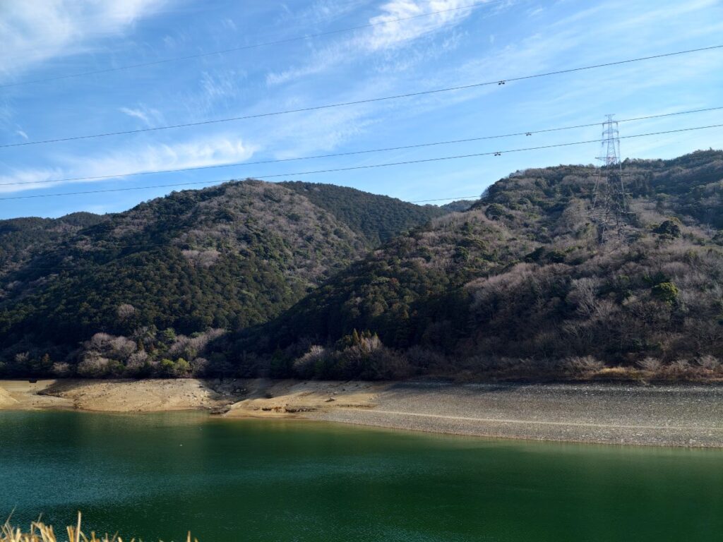土曜日の軽登山のスタートは新東名新城PAの前にある大原調整池の駐車場からだったのですが、その調整池もこの水位低下ぶり