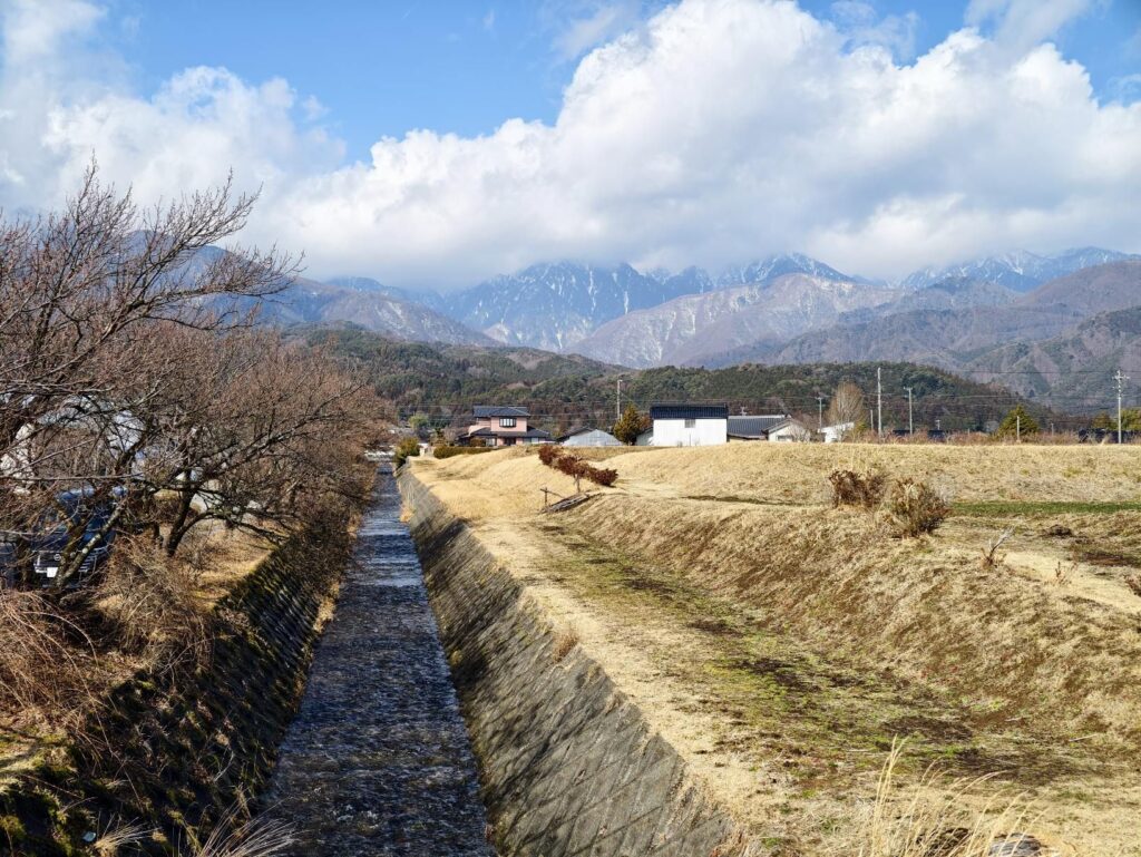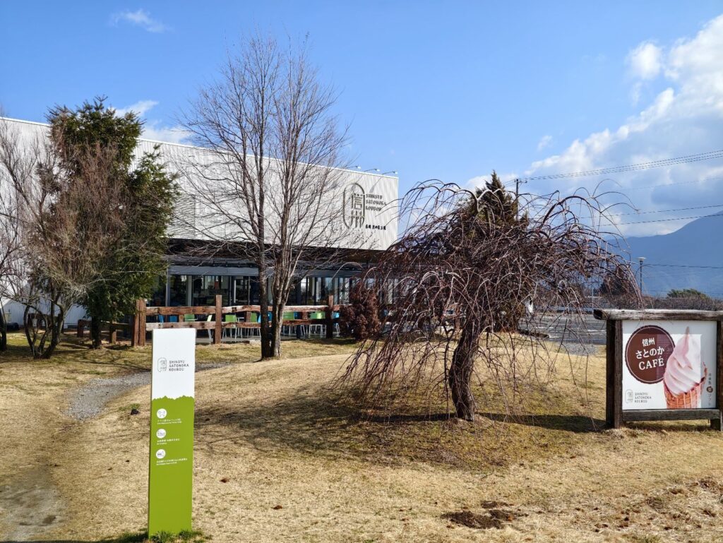 アップルパイラボさんで、買い物をしたらこんな風に雲に頭が隠れた中央アルプスの山々を眺めながら隣のスイーツ屋さんに移動