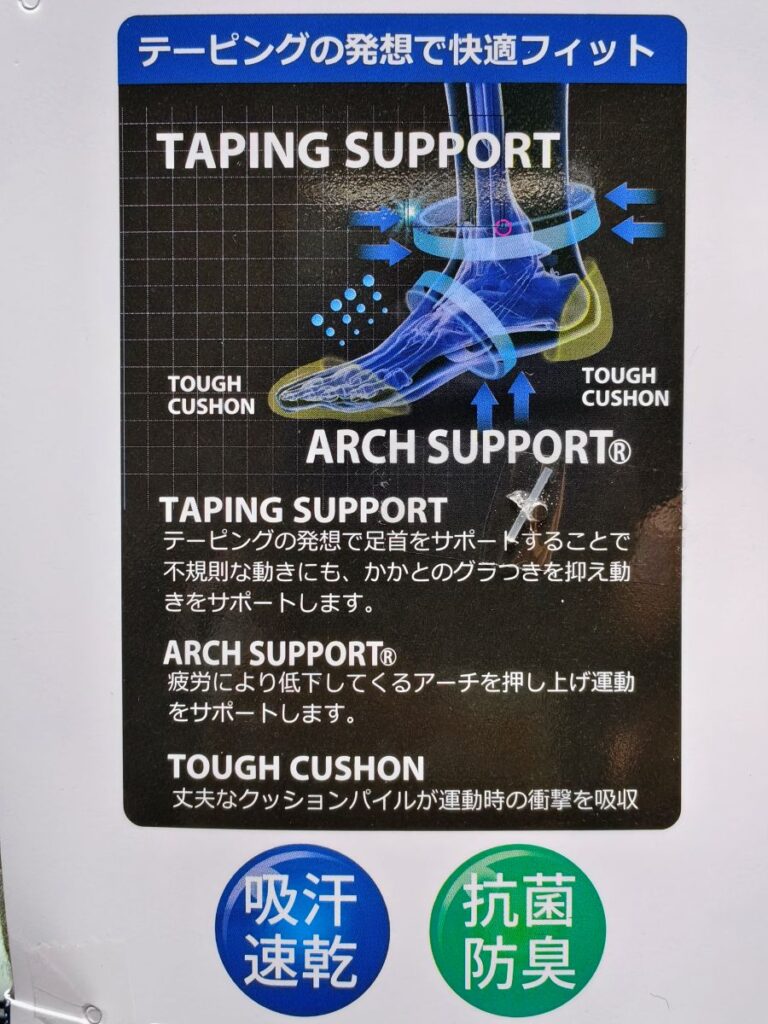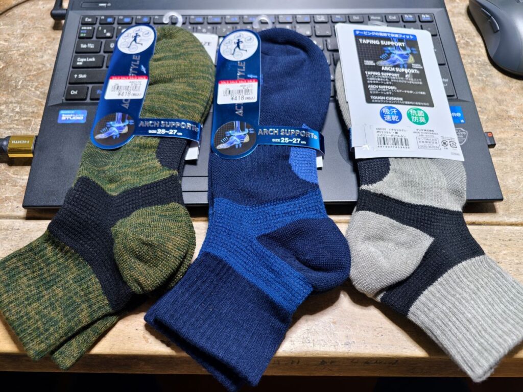 ここまでしっかりした物ではなくても、テーピングサポート仕様の靴下が3足で税込990円で売っているので、これは間違いなくお買い得だと思います。