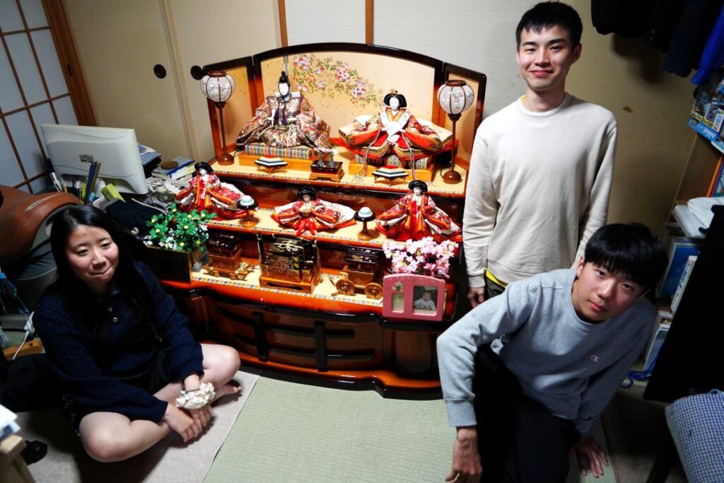 男性がスキーに行っていた3連休にひな人形が出してありました。