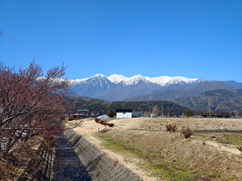 ちなみに道の駅花の里いいじまから見える南アルプスの山々こちら